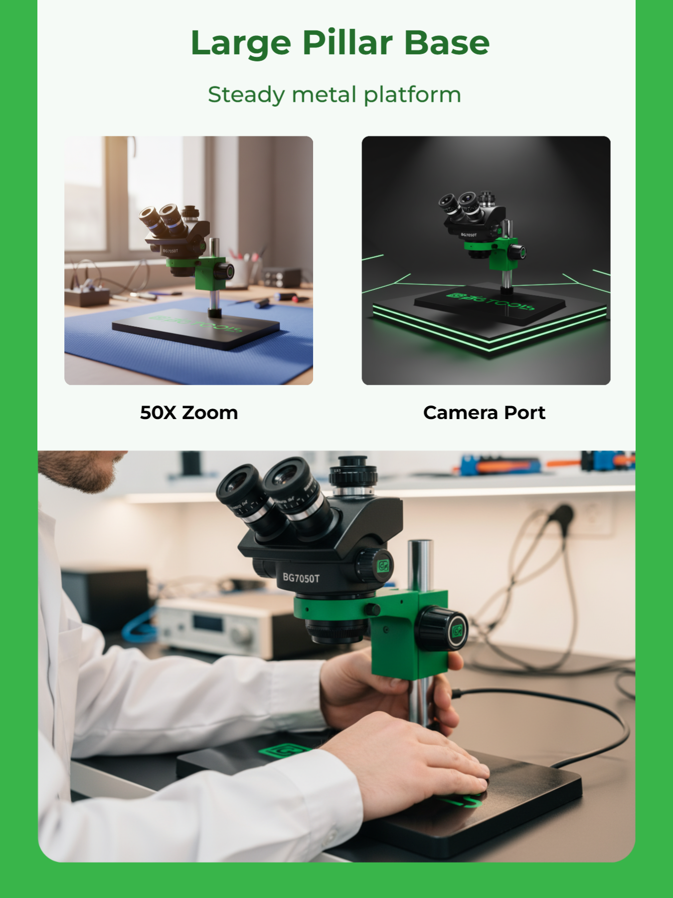BG Trinocular Stereo Microscope 7X to 50X